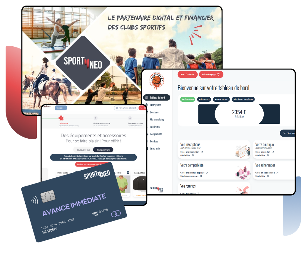 Avec SPORTYNEO, vos adhérents paient au choix en 1, 4 ou 12 fois, et vous collectez immédiatement la totalité, grâce à une avance de fonds.